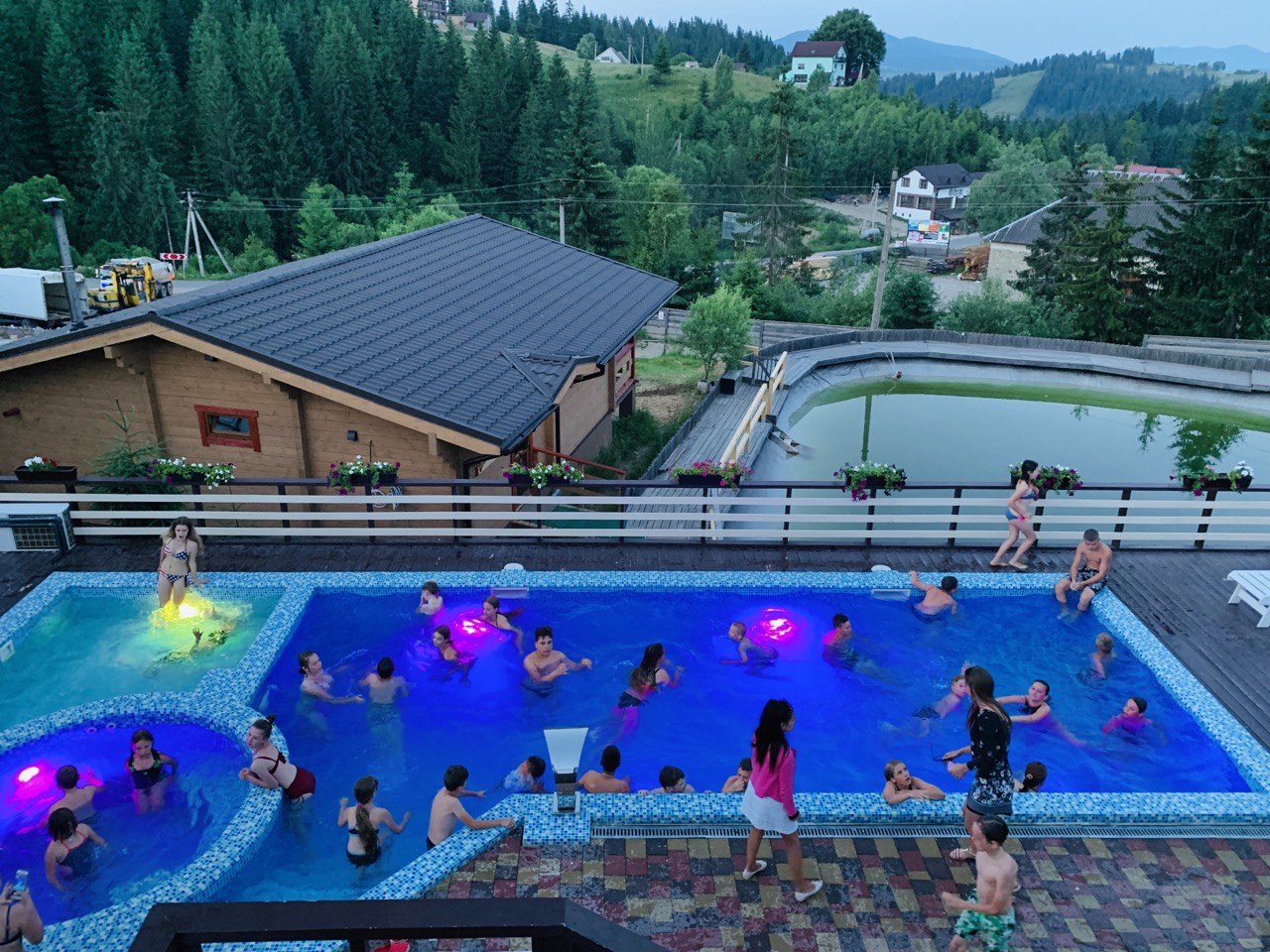 - відкритий дитячий басейн, плавальний басейн з джакузі та вібромасажем, чани;